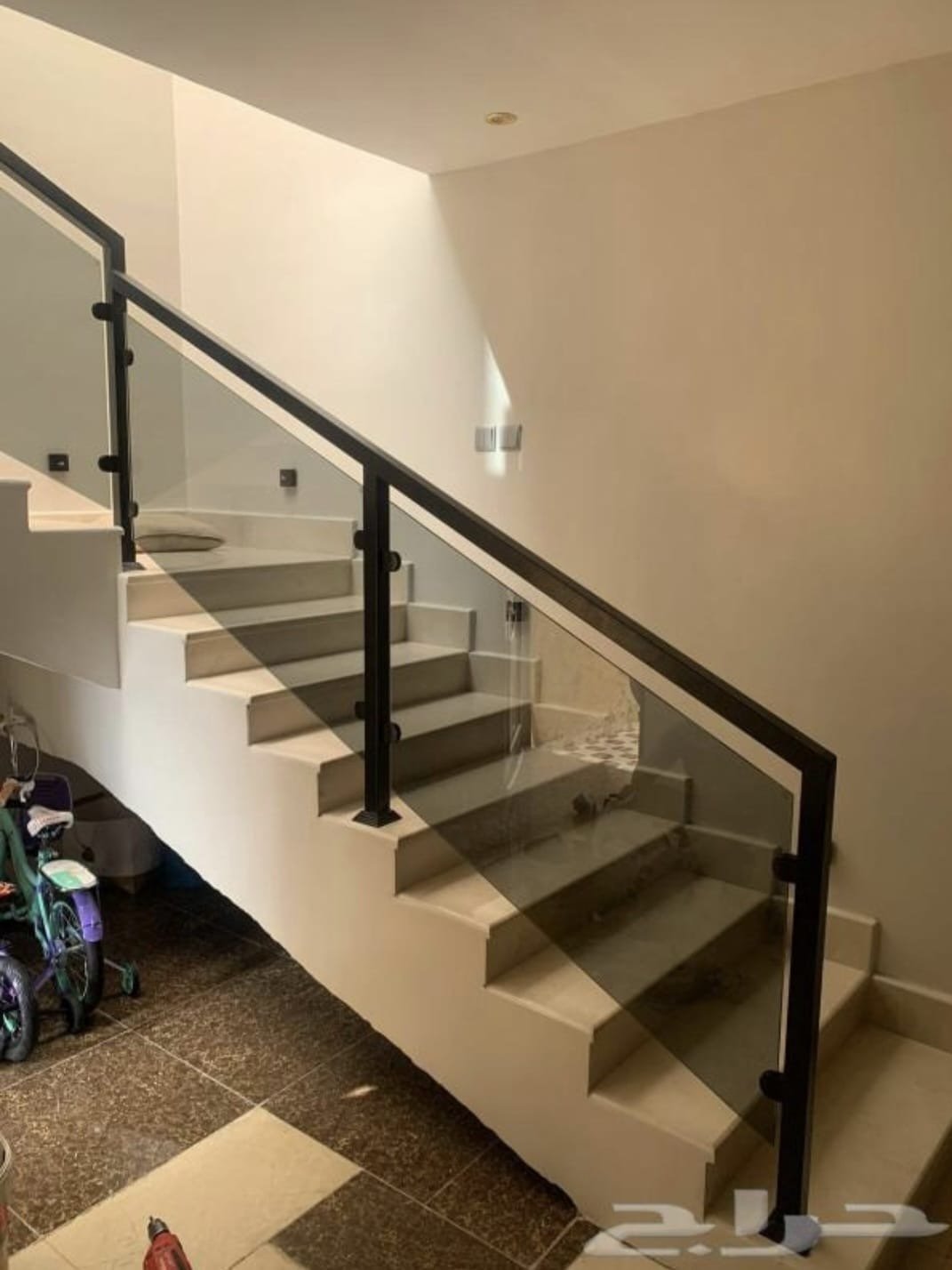 درابزين داخلي للسلالم: بشكل بسيط أو مودرن.