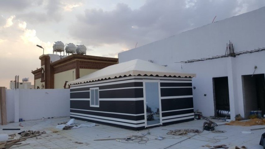 تصميم وتنفيذ بيوت شعر ملكية بأسقف خشبية أو حديدية.